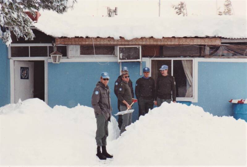 Nikolaus Selinger, Fotos aus dem Jänner/Februar 1992, ich war damals auf 34er WaPo und in diesem Winter hat es bis Tiberias runter geschneit. Wir hatten so viel Schnee, dass ein M113 bei der Shooting Ranch in der 1. Kp. mit bis zu 10 Meter Schnee bedeckt war. Der Panzer hatten einen technischen Defekt und konnte beim Wintereinbruch nicht mehr geborgen werden.