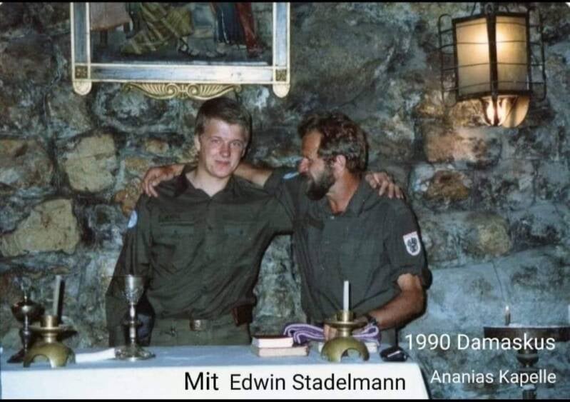 Nach dem Bau des Hauses am Gipfel des Mount Hermon ist der damalige Seelsorger (tut mir leid, ich habe den Namen vergessen) zu mir gekommen und hat gefragt, ob ich nicht auch eine Kirche im Camp Faouar bauen könnte. Ich habe die Pläne gezeichnet, Geld für Material gesammelt und mit dem Bau begonnen. Allerdings war meine Zeit am Golan zu Ende und ich konnte die Kirche nicht fertigstellen. Das hat mein Nachfolger übernommen, der mir auch das Bild geschickt hat. Hermann Loidolt