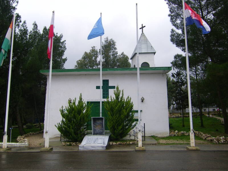 Oben im Bild ein Teil des angrenzenden Waldes zum Camp. Für jene Leser, die in den frühen Anfängen des Camps ihren Dienst versahen, war weder die Umfahrung noch gab es Wälder im Umkreis. Zeitzeugen haben berichtet, dass die Straße mitten durch das Camp verlief und erst später die gesamte Infrastruktur dem Bild 2010 entsprach. (heute 2025 ist alles ganz anders)