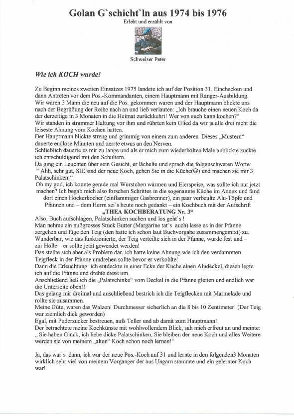 Erinnerungen des Kameraden Peter Schweizer 1974/76